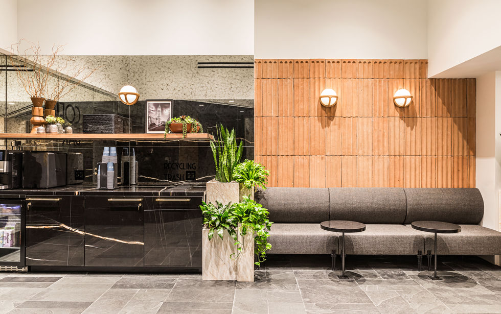 Re: Design Architects transformed the historic lobby at 322 Eighth Avenue, Chelsea, New York NY, restoring its neo-gothic heritage while creating a contemporary, hospitality-driven arrival experience. Rooted in contextual research and art-built inspiration from the existing art deco mural, the new lobby palette and detailing reimagine the space with warmth and intentional materiality, encouraging occupancy and social interaction. The renovation introduces a curated coffee bar, sustainable living moss wall, and layered lighting to support comfort, connectivity, and amenity-forward programming for tenants and guests. This thoughtful lobby design enhances tenant engagement, supports return-to-office initiatives, and reinforces the building’s architectural legacy.